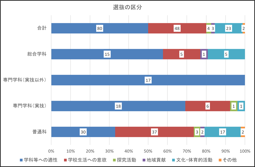 に加えて、区分、募集割合、選抜資料、選抜方法が示されている。府立高校全体でどのような特別枠になっているのか、データをグラフ化してみた。